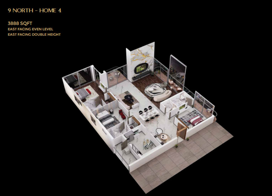 This soaring double-height space creates a villa-like ambience inside a high-rise home, offering unmatched grandeur, abundant natural light, and enhanced ventilation. It is more than just a living room - it's a statement of scale, sophistication, and innovation.